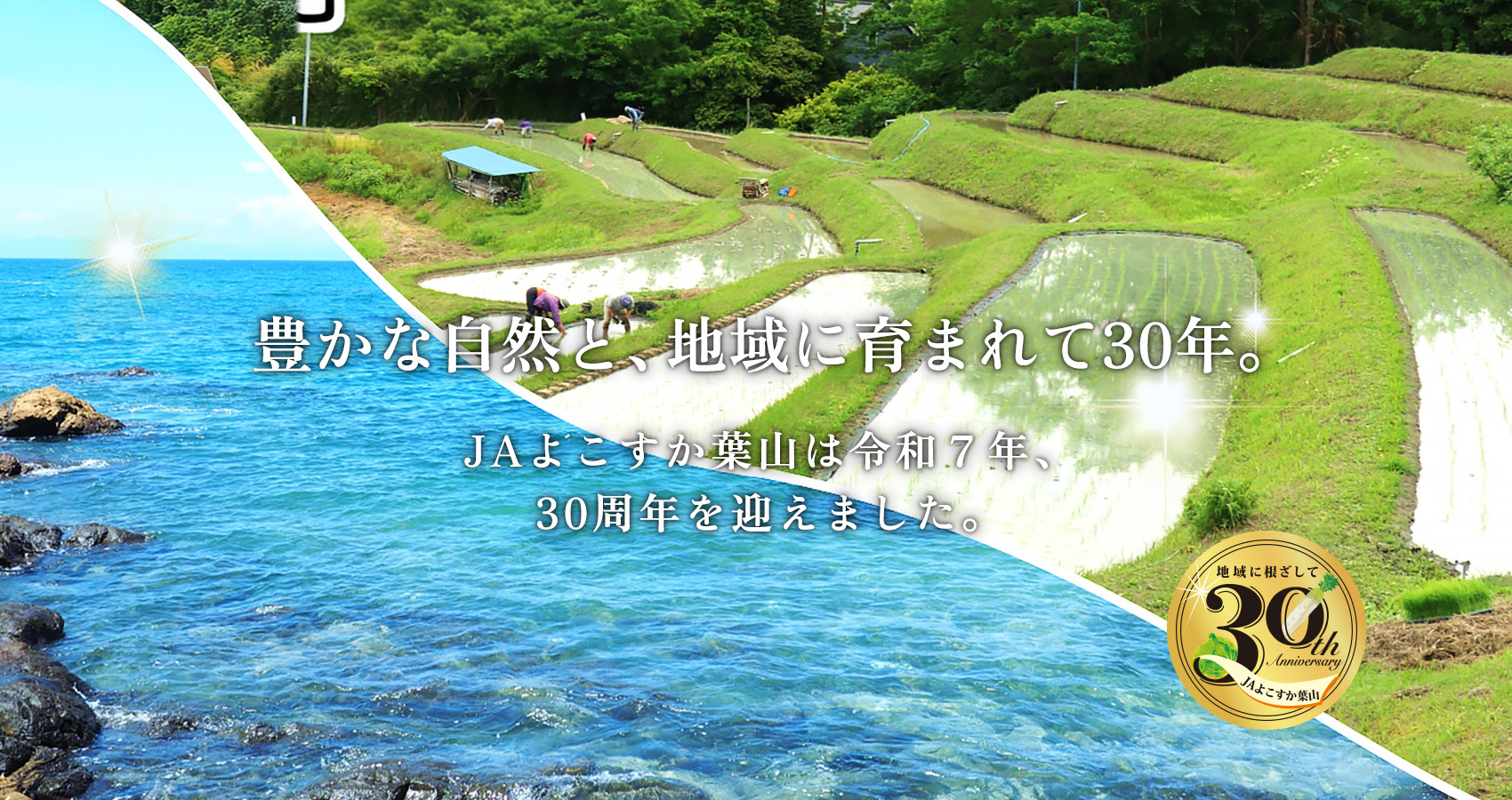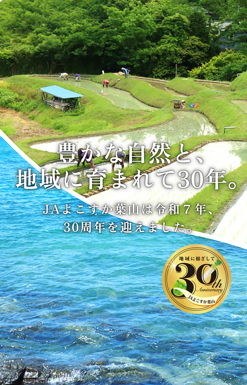 平成7年4月、横須賀市農協と葉山町農協の合併によって誕生した、よこすか葉山農業協同組合は本年、設立30周年を迎えました。